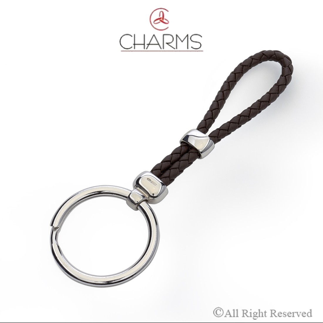 Portachiavi in Cuoio Testa di Moro intrecciato con blocchi in Argento