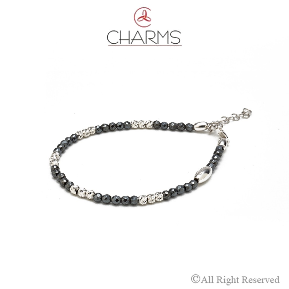 Realizzato con elementi di Ematite nera sfacettata, alternata con Palline diamantate di Argento 925.