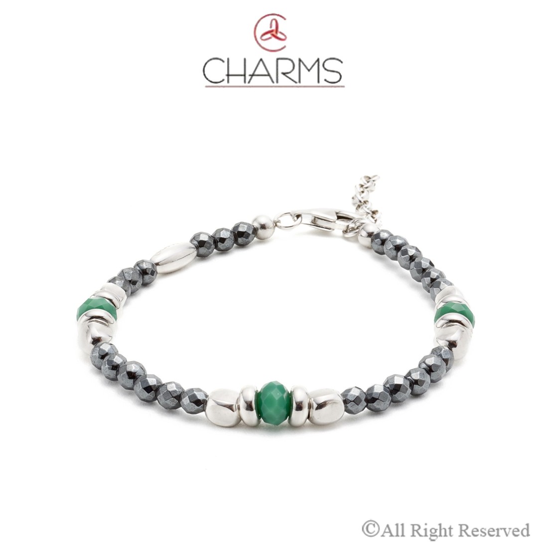 Bracciale Agata Verde Charms con girelli e cubetti Argento