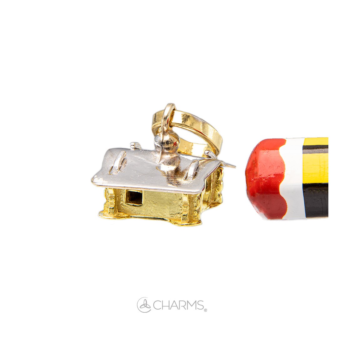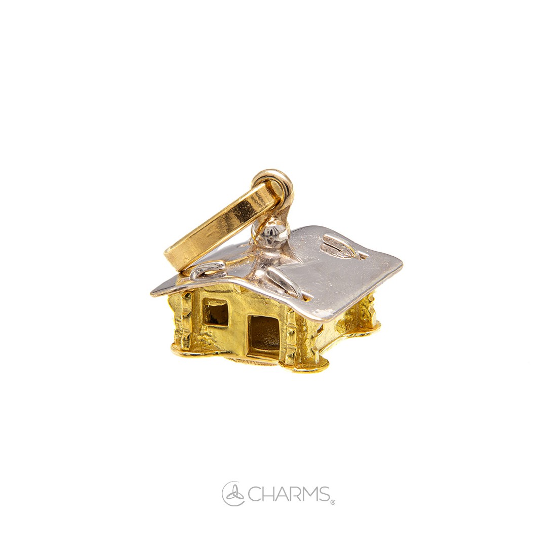 Questo splendido charm o pendente o ciondolo CHARMS a forma di casa è prodotto in oro giallo ed in oro bianco 18 carati, seguendo la tradizione e la competenza nella lavorazione dell'oro degli Artigiani Orafi.