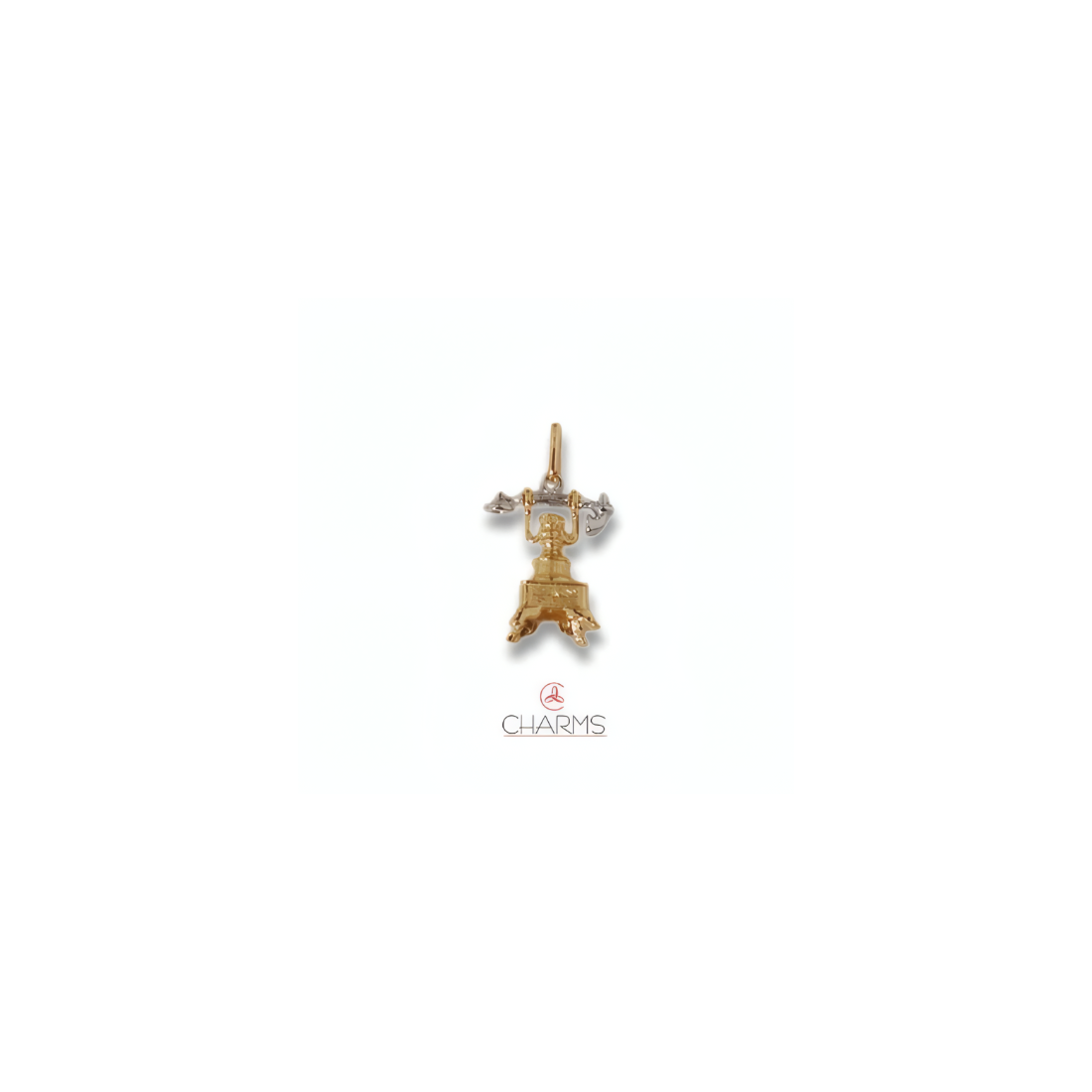 Questo splendido charm o pendente o ciondolo CHARMS a forma di Telefono a cornetta è prodotto in oro giallo ed in oro bianco 18 carati, seguendo la tradizione e la competenza nella lavorazione dell'oro degli Artigiani Orafi.