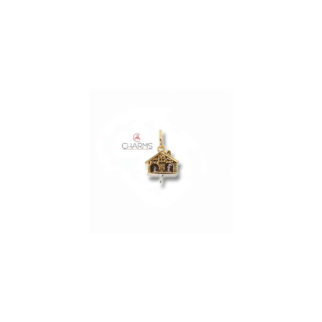Questo splendido charm o pendente o ciondolo CHARMS a forma di Orologio Cucù Casetta è prodotto in oro giallo ed in oro bianco 18 carati, seguendo la tradizione e la competenza nella lavorazione dell'oro degli Artigiani Orafi.