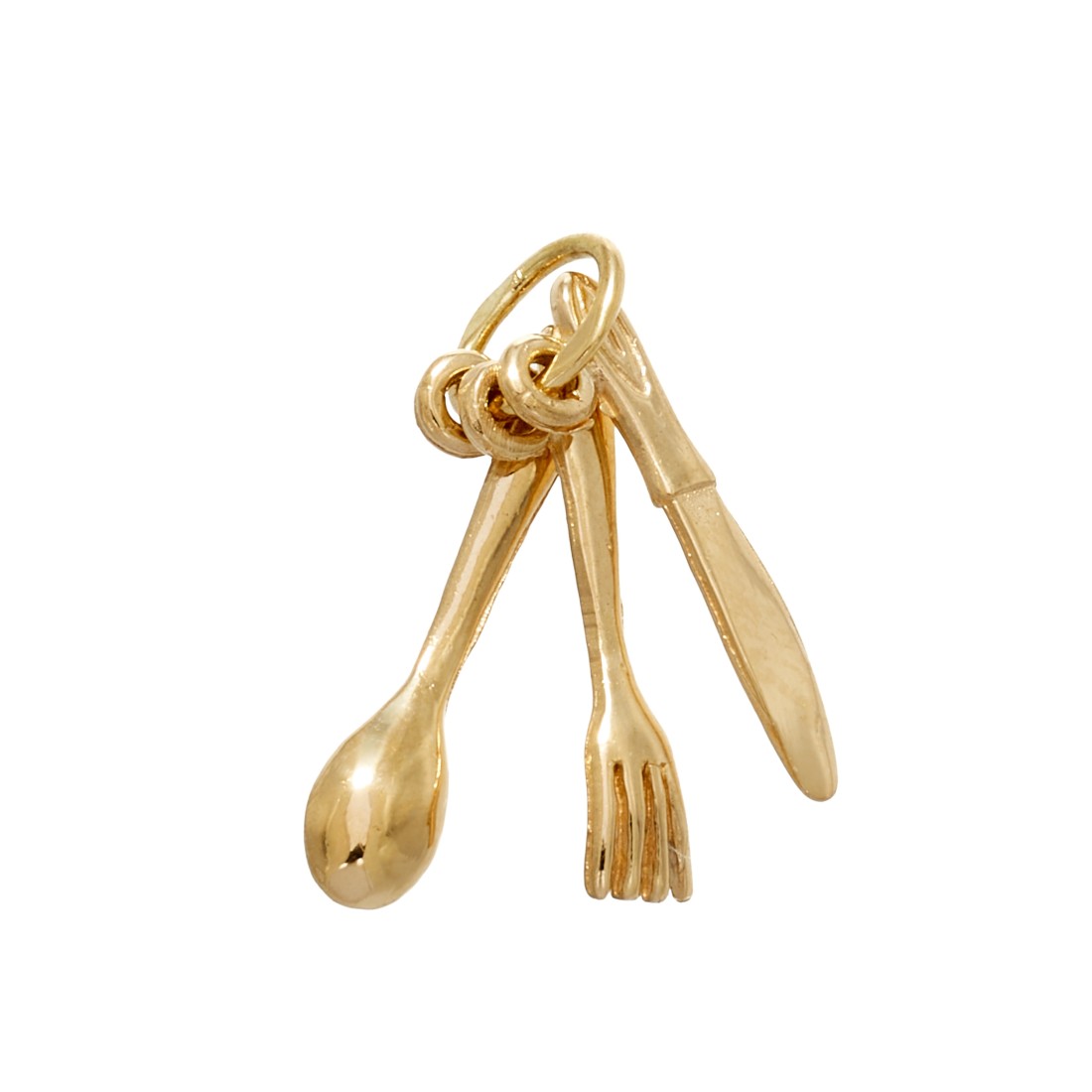 Questo splendido charm o pendente o ciondolo CHARMS a forma di posateria è prodotto in oro giallo 18 carati, seguendo la tradizione e la competenza nella lavorazione dell'oro degli Artigiani Orafi.