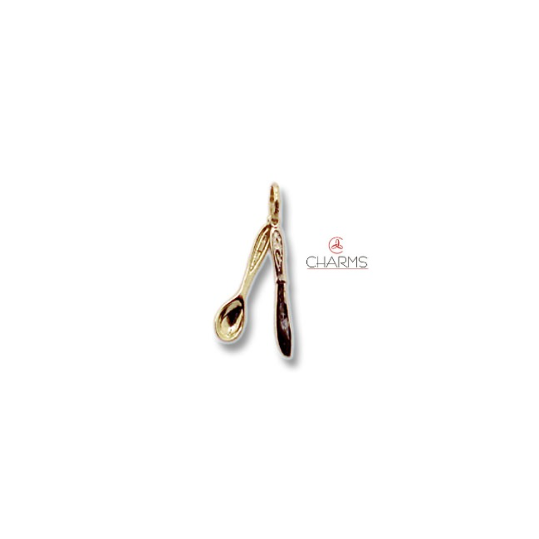 Questo splendido charm o pendente o ciondolo CHARMS a forma di cucchiaio e coltello è prodotto in oro giallo 18 carati, seguendo la tradizione e la competenza nella lavorazione dell'oro degli Artigiani Orafi.