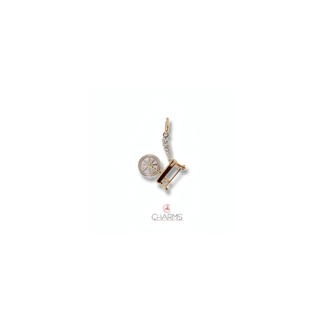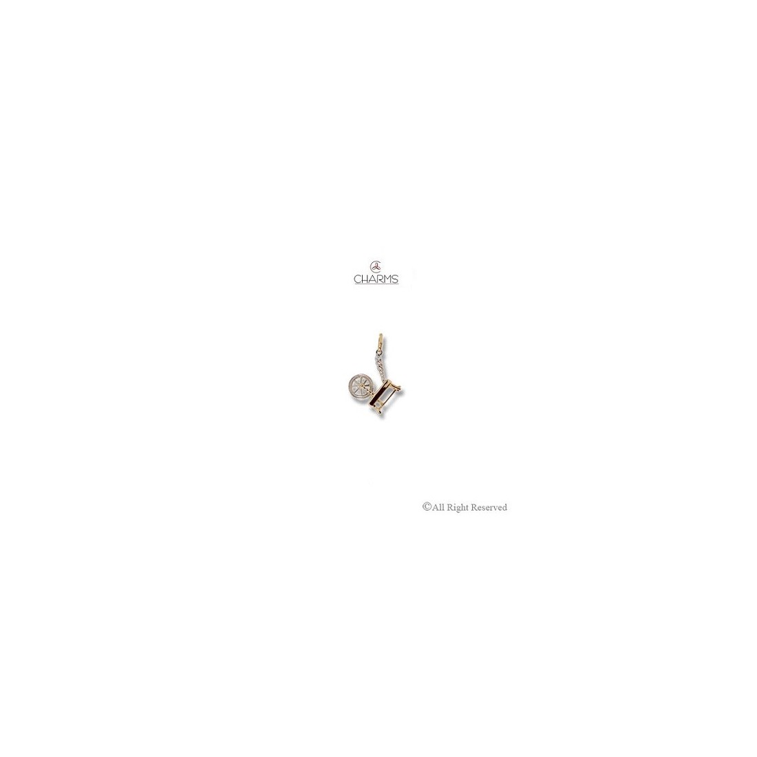 Questo splendido charm o pendente o ciondolo CHARMS a forma di filatoio è prodotto in oro giallo ed in oro bianco 18 carati, seguendo la tradizione e la competenza nella lavorazione dell'oro degli Artigiani Orafi.
