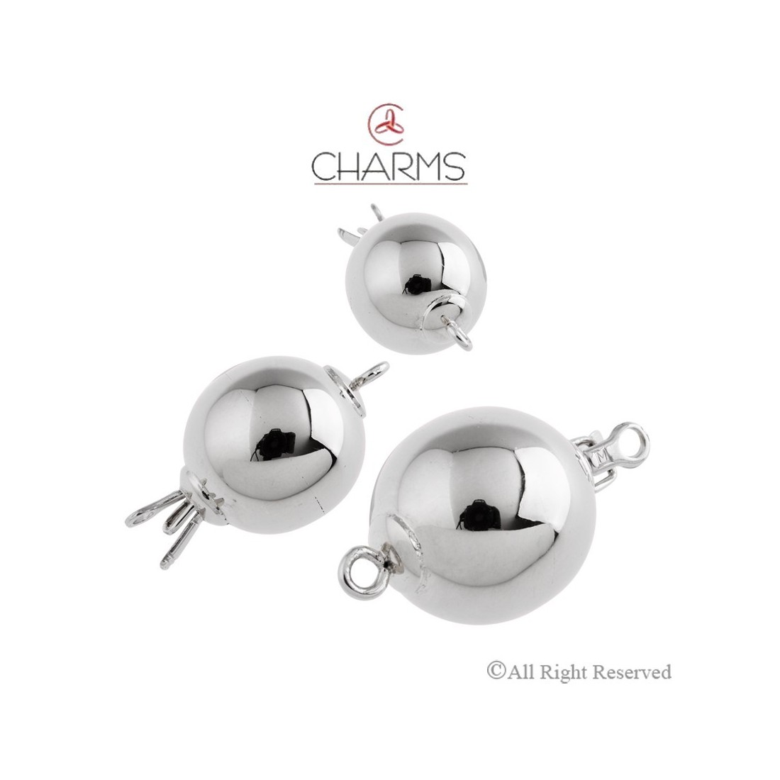 Chiusura a pallina in Argento 925, diametro ca. 12 mm, con sistema a scatto interno non magnetico. Prodotta in Italia e venduta a pezzo.