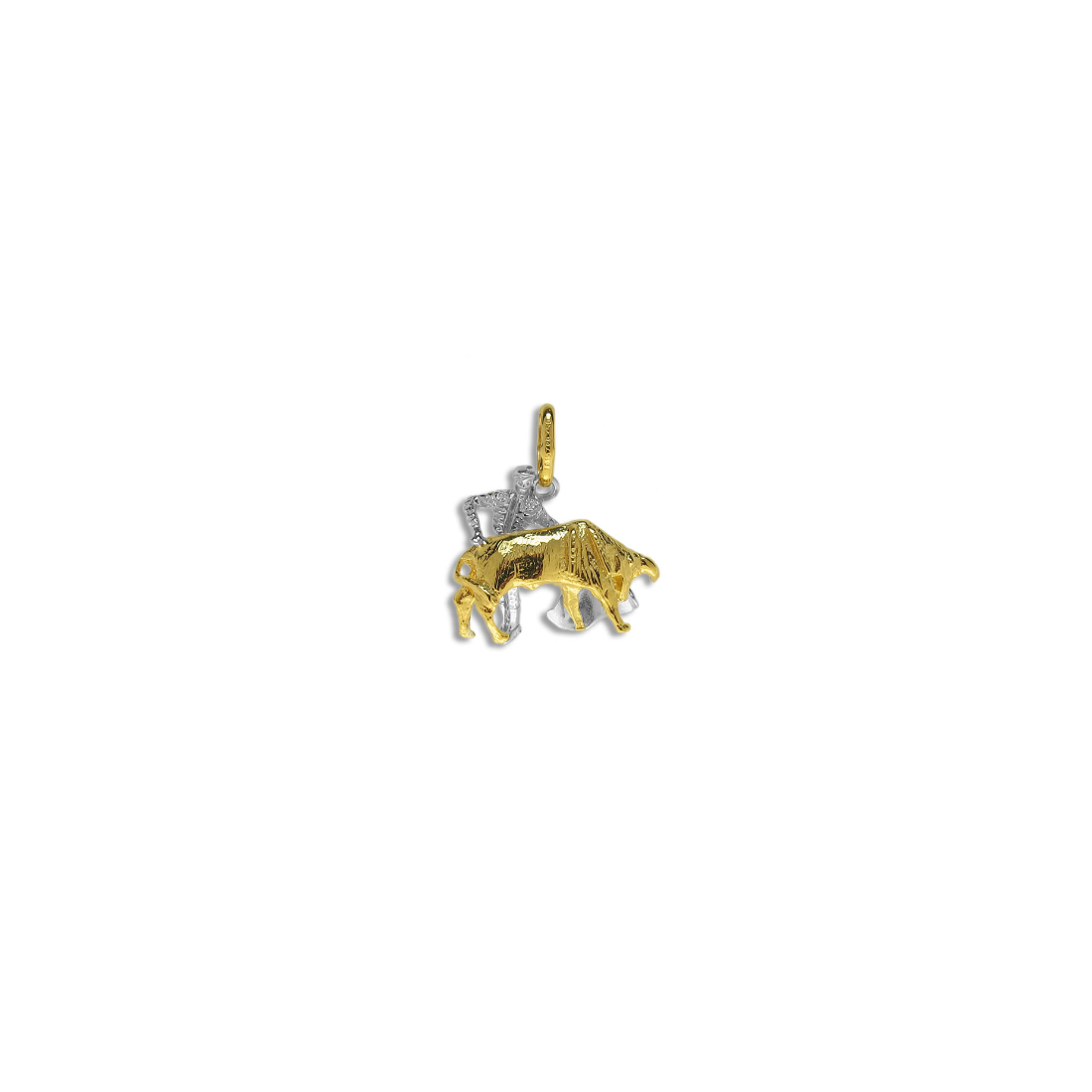 Questo splendido charm o pendente o ciondolo CHARMS a forma di Toro con Uomo è prodotto in oro giallo ed in oro bianco 18 carati, seguendo la tradizione e la competenza nella lavorazione dell'oro degli Artigiani Orafi.