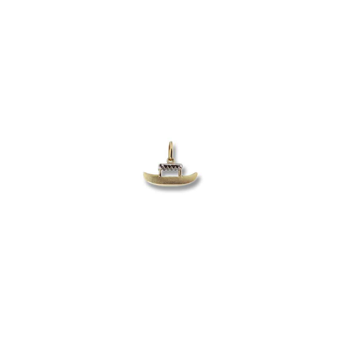 Questo splendido charm o pendente o ciondolo CHARMS a forma di barca Egizia è prodotto in oro giallo ed in oro bianco 18 carati, seguendo la tradizione e la competenza nella lavorazione dell'oro degli Artigiani Orafi.