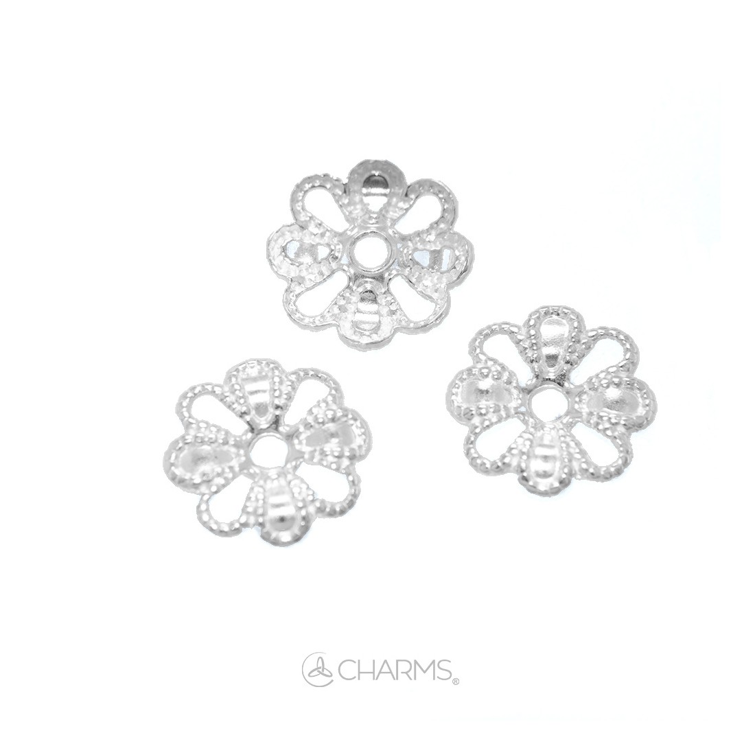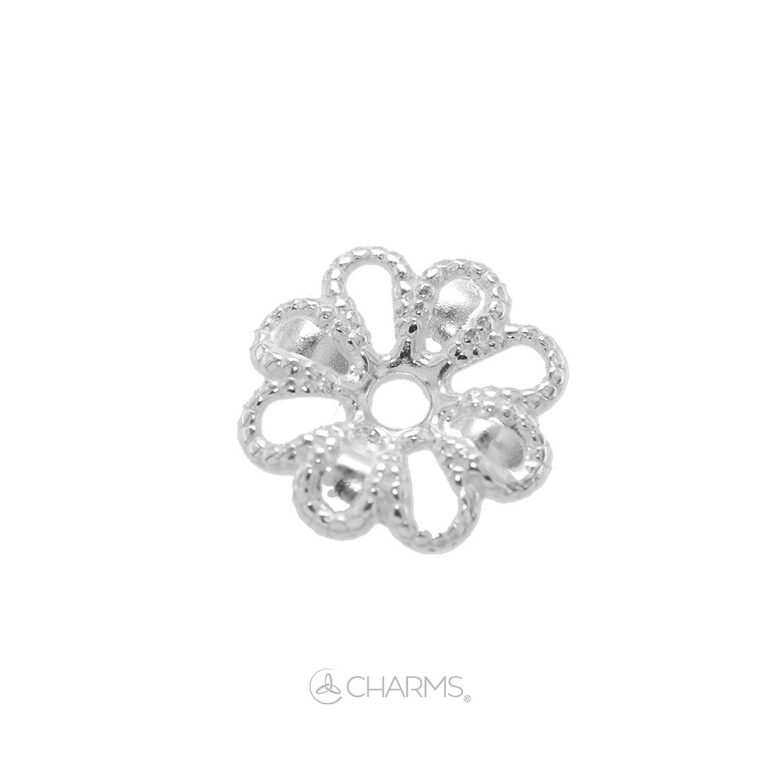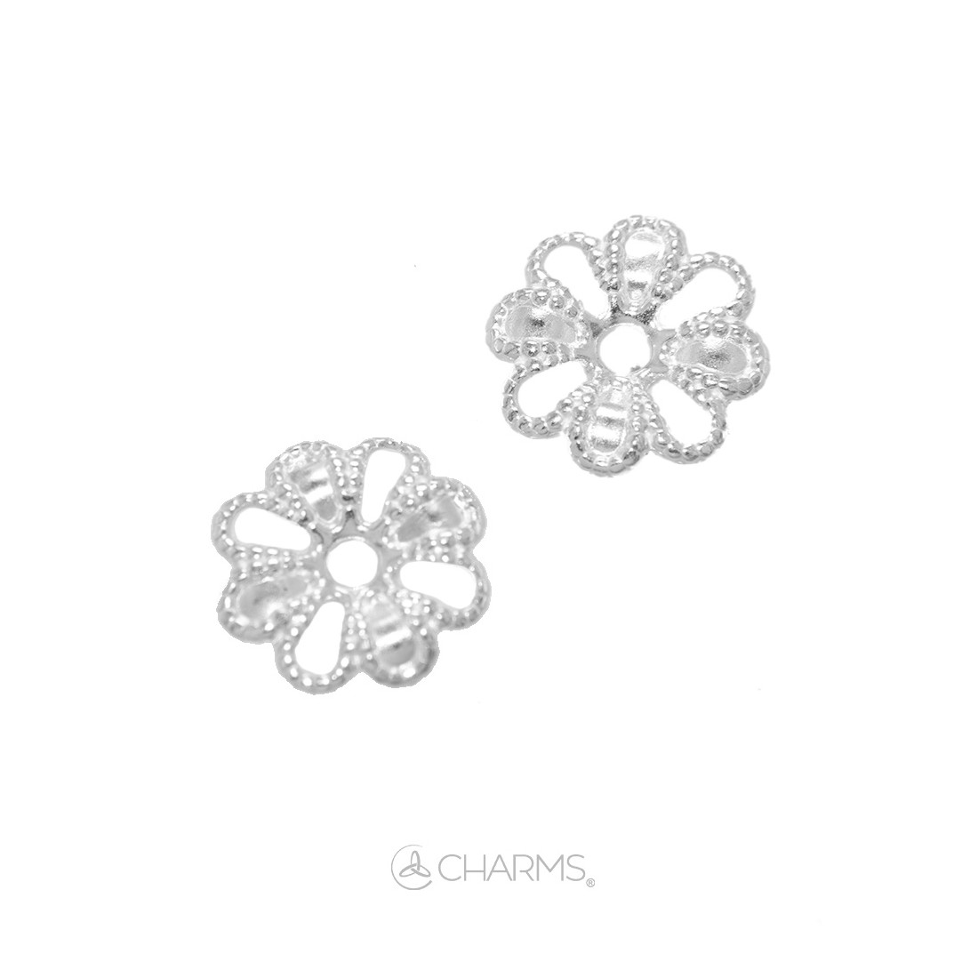 Fiorellino Piatto in Filigrana traforato per collane ed orecchini da 8 mm per abbellire pietre e perle in argento 925 senza Nichel e Cadmio.