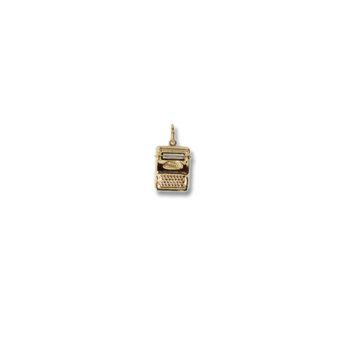 Pendente CHARMS a forma di Macchina da Scrivere in oro giallo e oro bianco 18 kt, realizzato con cura e competenza artigianale nell'area orafa di Vicenza.