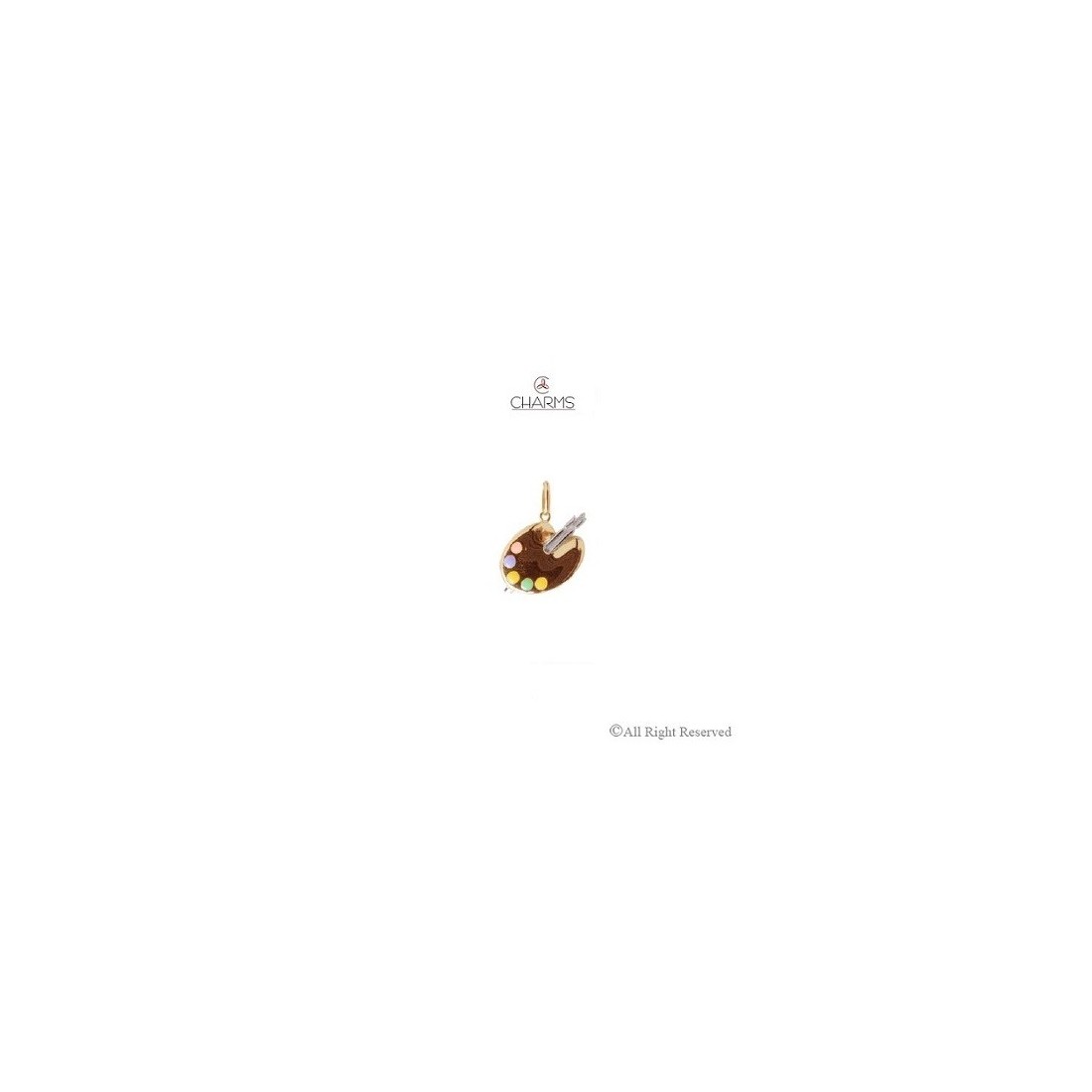 Questo splendido charm o pendente o ciondolo CHARMS a forma di Tavolozza da pittore è prodotto in oro giallo ed in oro bianco 18 carati, seguendo la tradizione e la competenza nella lavorazione dell'oro degli Artigiani Orafi.