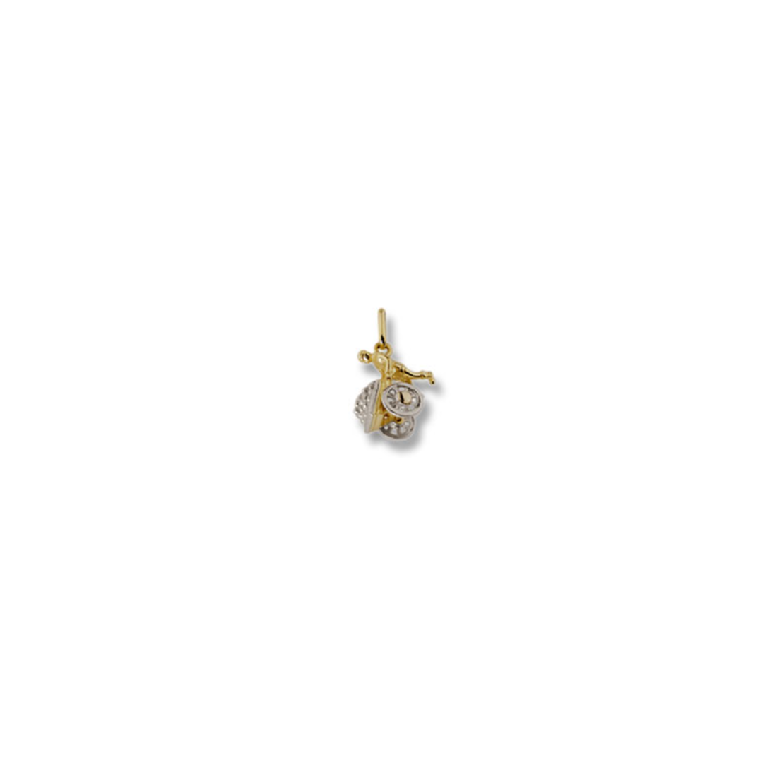 Questo splendido charm o pendente o ciondolo CHARMS a forma di carretto con frutta è prodotto in oro giallo ed in oro bianco 18 carati, seguendo la tradizione e la competenza nella lavorazione dell'oro degli Artigiani Orafi.
