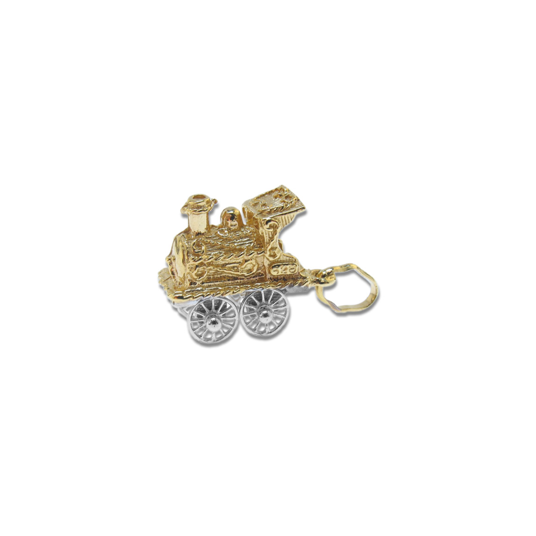 Questo splendido charm o pendente o ciondolo CHARMS a forma di locomotiva di treno è prodotto in oro giallo ed in oro bianco 18 carati, seguendo la tradizione e la competenza nella lavorazione dell'oro degli Artigiani Orafi.