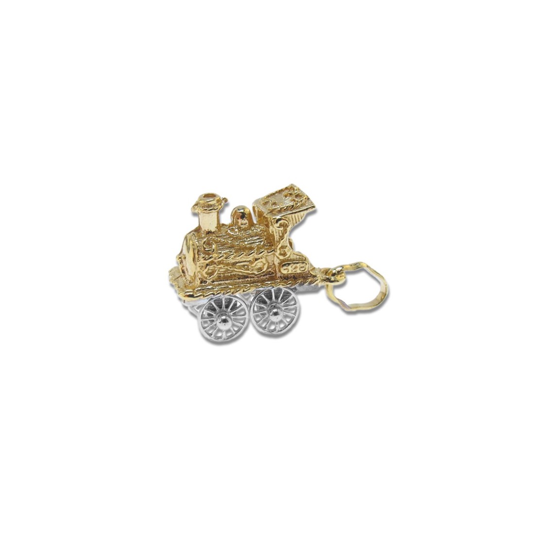 Splendido pendente CHARMS a forma di locomotiva di treno in oro 18 carati, unico nel suo genere realizzato con cura e competenza artigianale nell'area orafa di Vicenza.