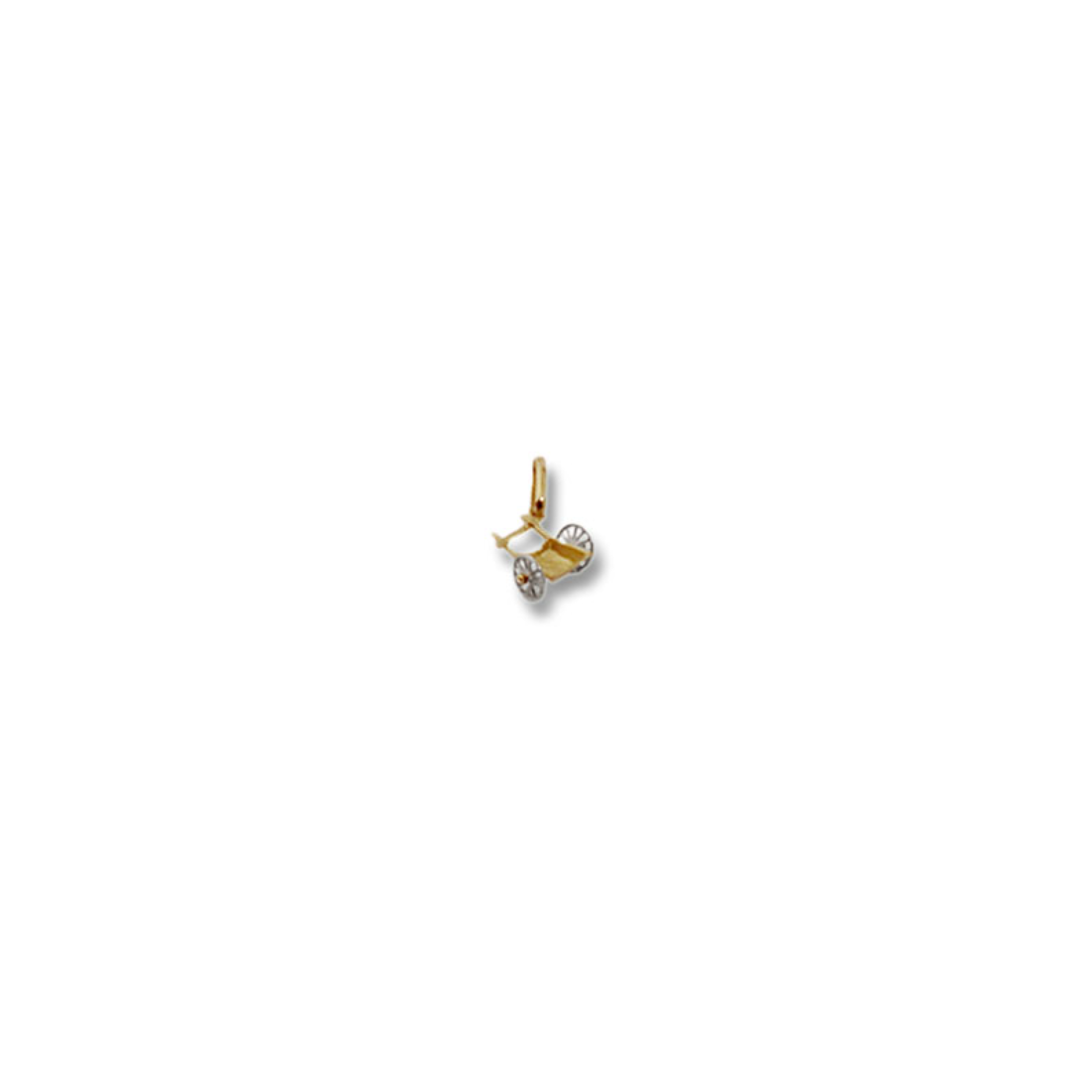 Questo splendido charm o pendente o ciondolo CHARMS a forma di carretto è prodotto in oro giallo ed in oro bianco 18 carati, seguendo la tradizione e la competenza nella lavorazione dell'oro degli Artigiani Orafi.