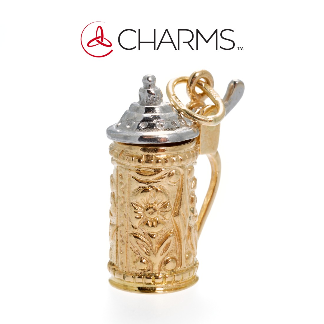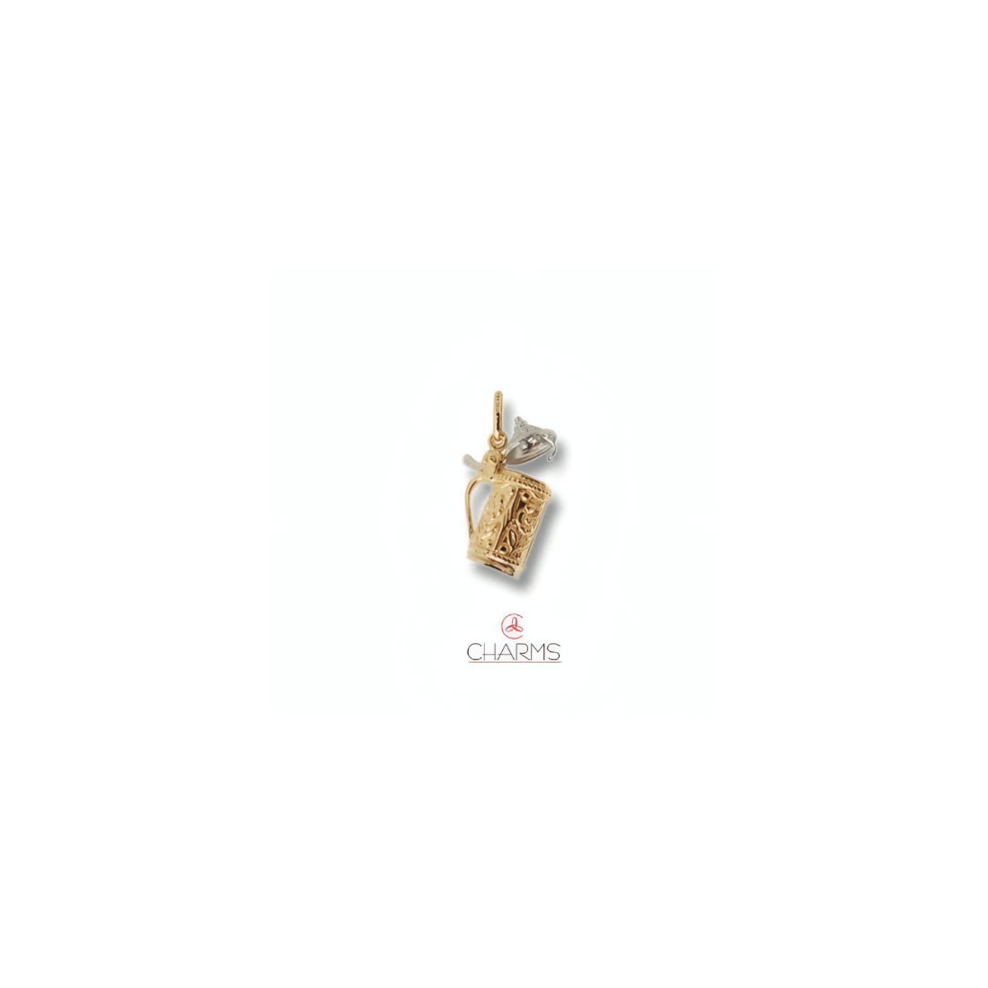 Questo splendido charm o pendente o ciondolo CHARMS a forma di boccale di birra è prodotto in oro giallo ed in oro bianco 18 carati, seguendo la tradizione e la competenza nella lavorazione dell'oro degli Artigiani Orafi.