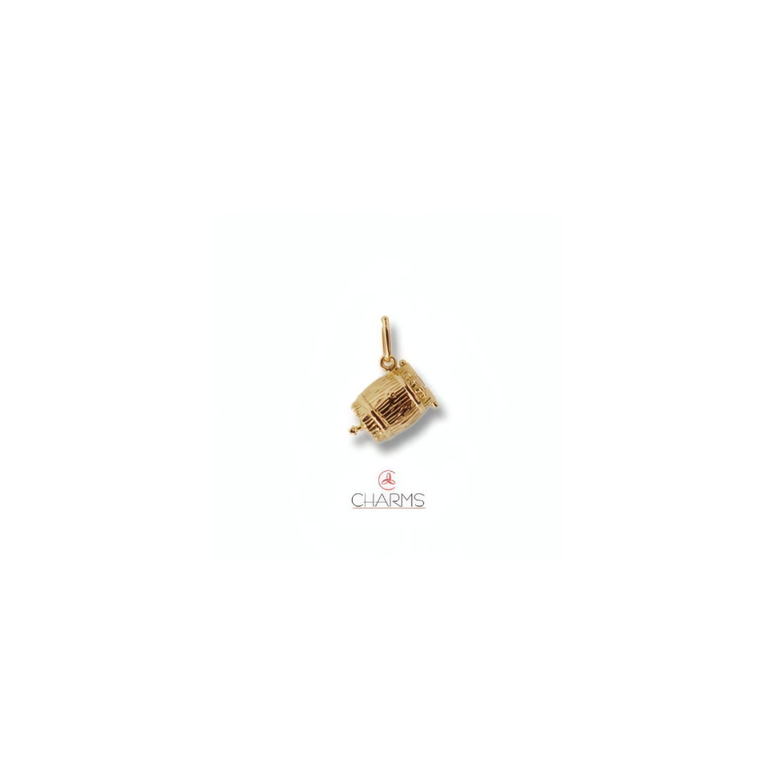 Splendido pendente Charms a forma di botte di vino in oro giallo e oro bianco 18 Carati, unico nel suo genere realizzato con cura e competenza artigianale.