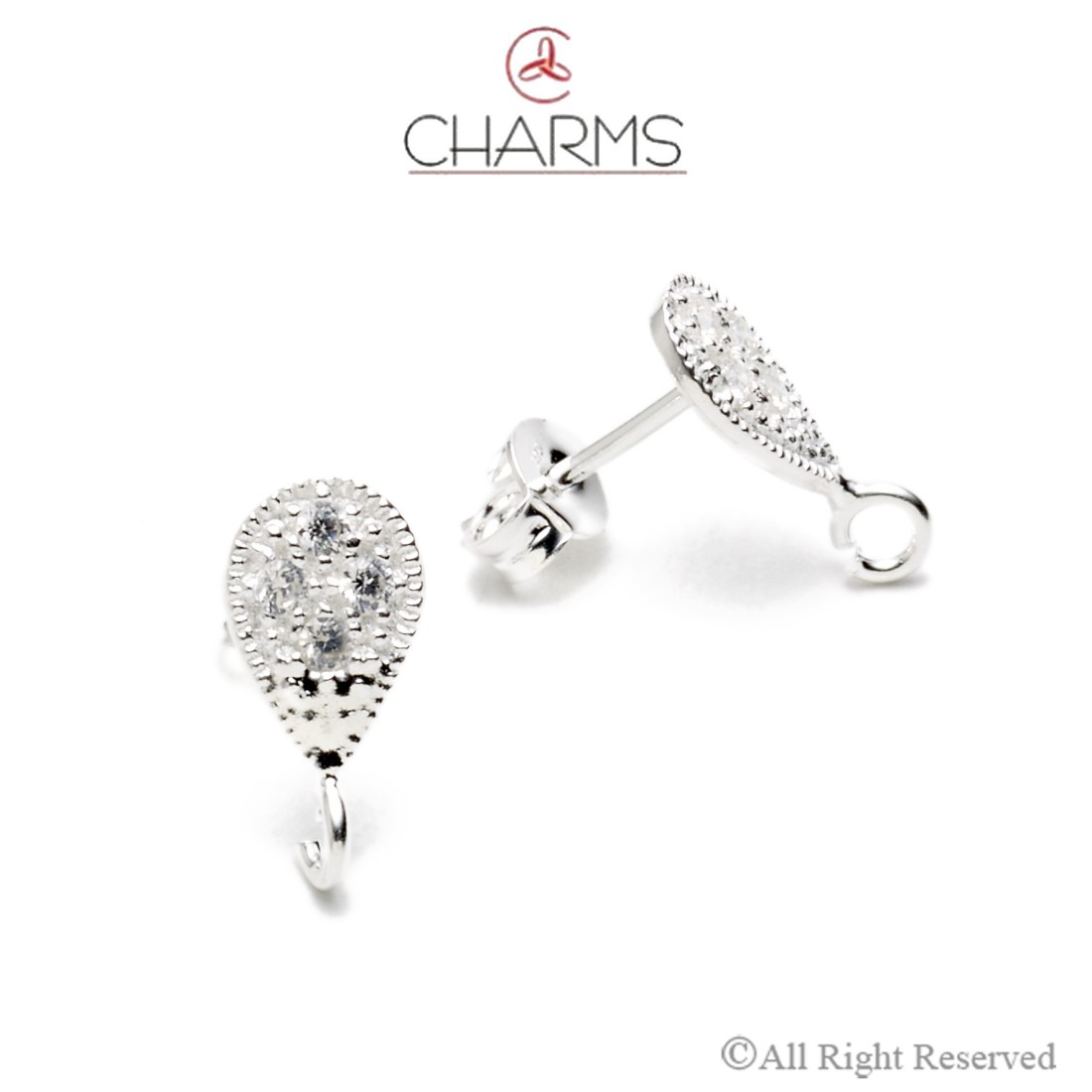 Orecchino a goccia con zirconi, un anellino aperto per poterci attaccare qualsiasi pendente e farfallina inclusa in argento 925 senza Nichel e Cadmio.