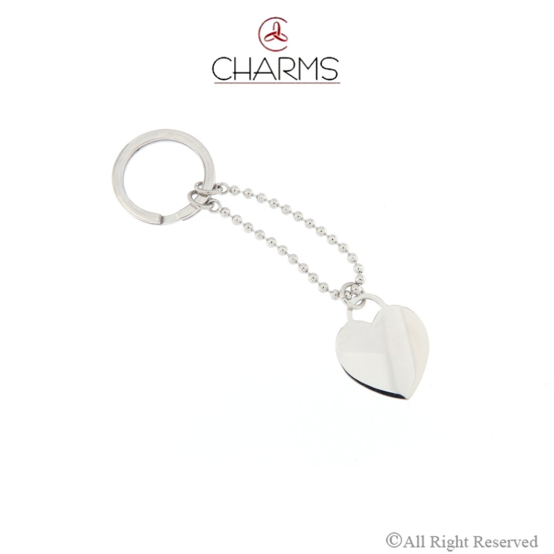 Portachiavi con brisè rotondo, catena modello palline e cuore in argento 925 senza Nichel e Cadmio.