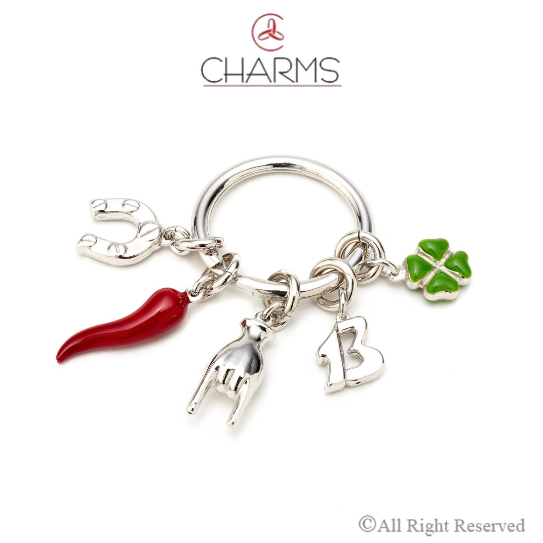 Originale Portachiavi brisè rotondo Portafortuna con ciondoli inclusi per avere sempre la Fortuna al proprio fianco, in argento 925 senza Nichel e Cadmio.