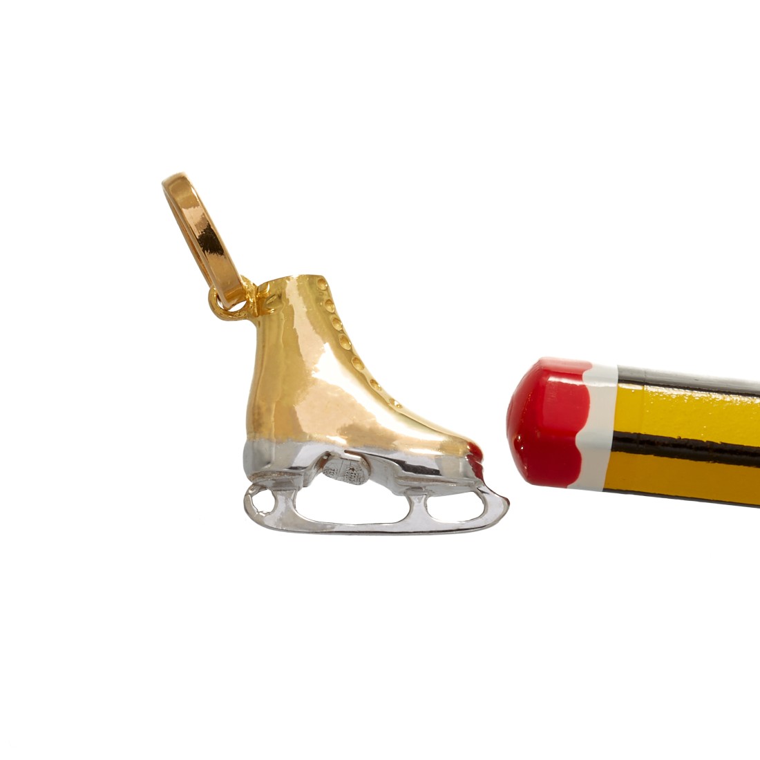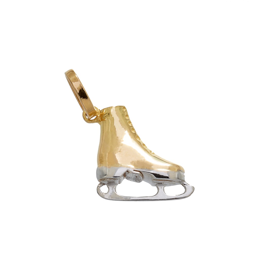 Splendido pendente Charms a forma di Pattino da ghiaccio artistico da donna in oro giallo e oro bianco 18K , unico nel suo genere realizzato con cura e competenza artigianale
