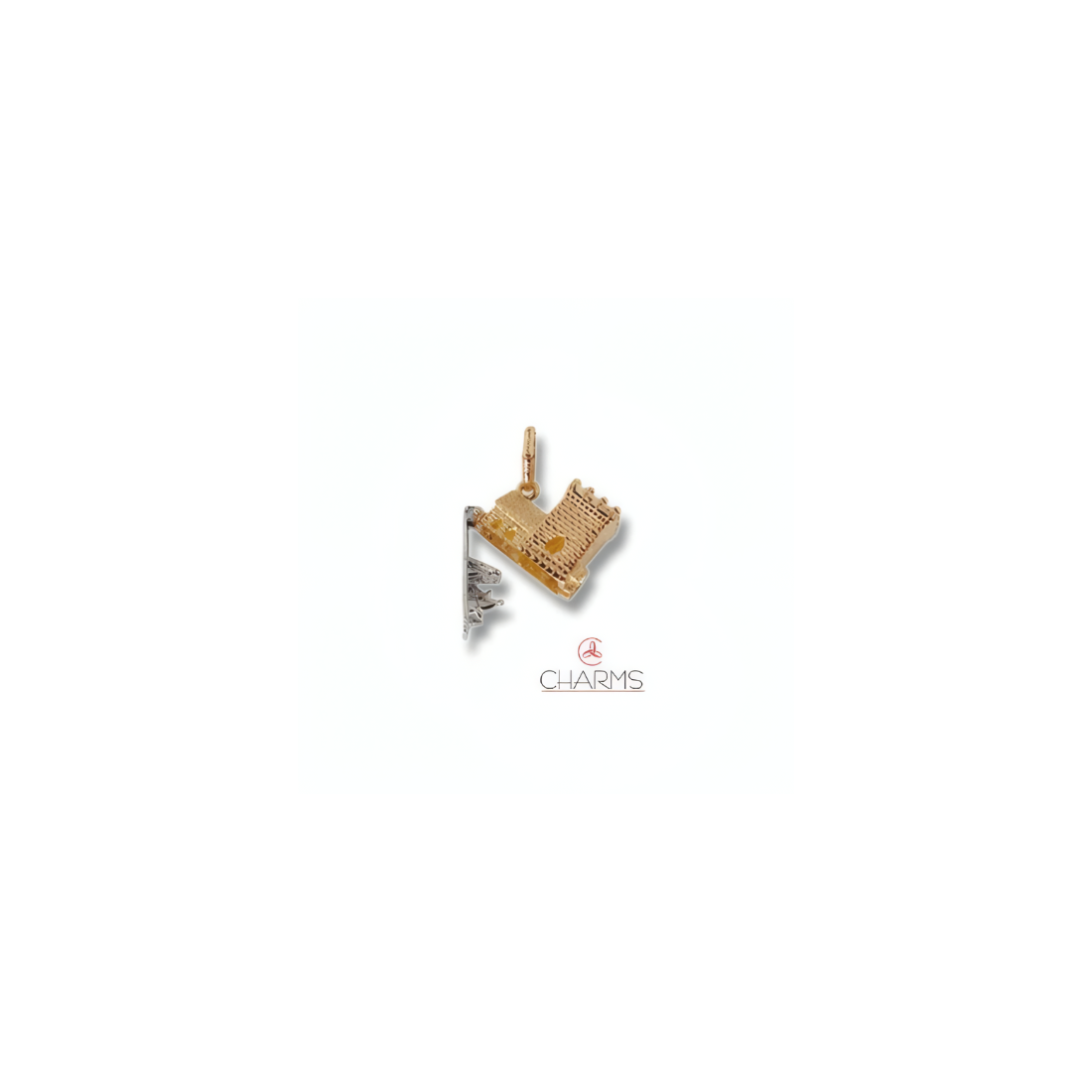 Questo splendido charm o pendente o ciondolo CHARMS a forma di fortezza è prodotto in oro giallo ed in oro bianco 18 carati, seguendo la tradizione e la competenza nella lavorazione dell'oro degli Artigiani Orafi.